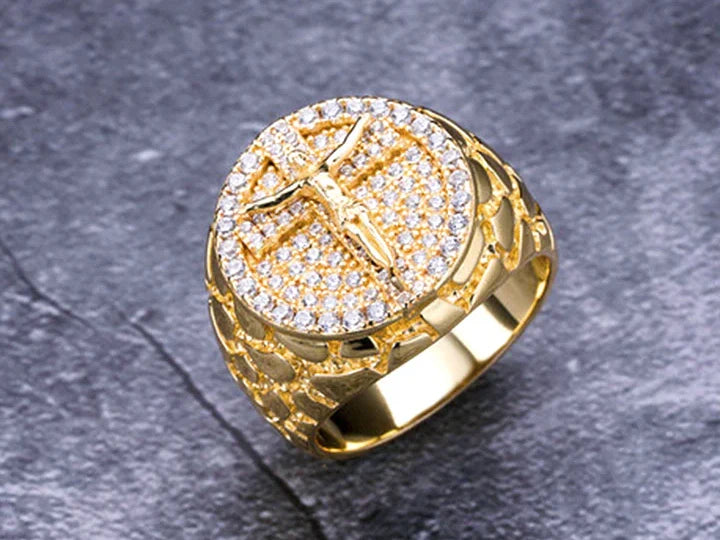 Solid Gold San Judas Ring 14K Gold $299.00 Classic, CZ Accents